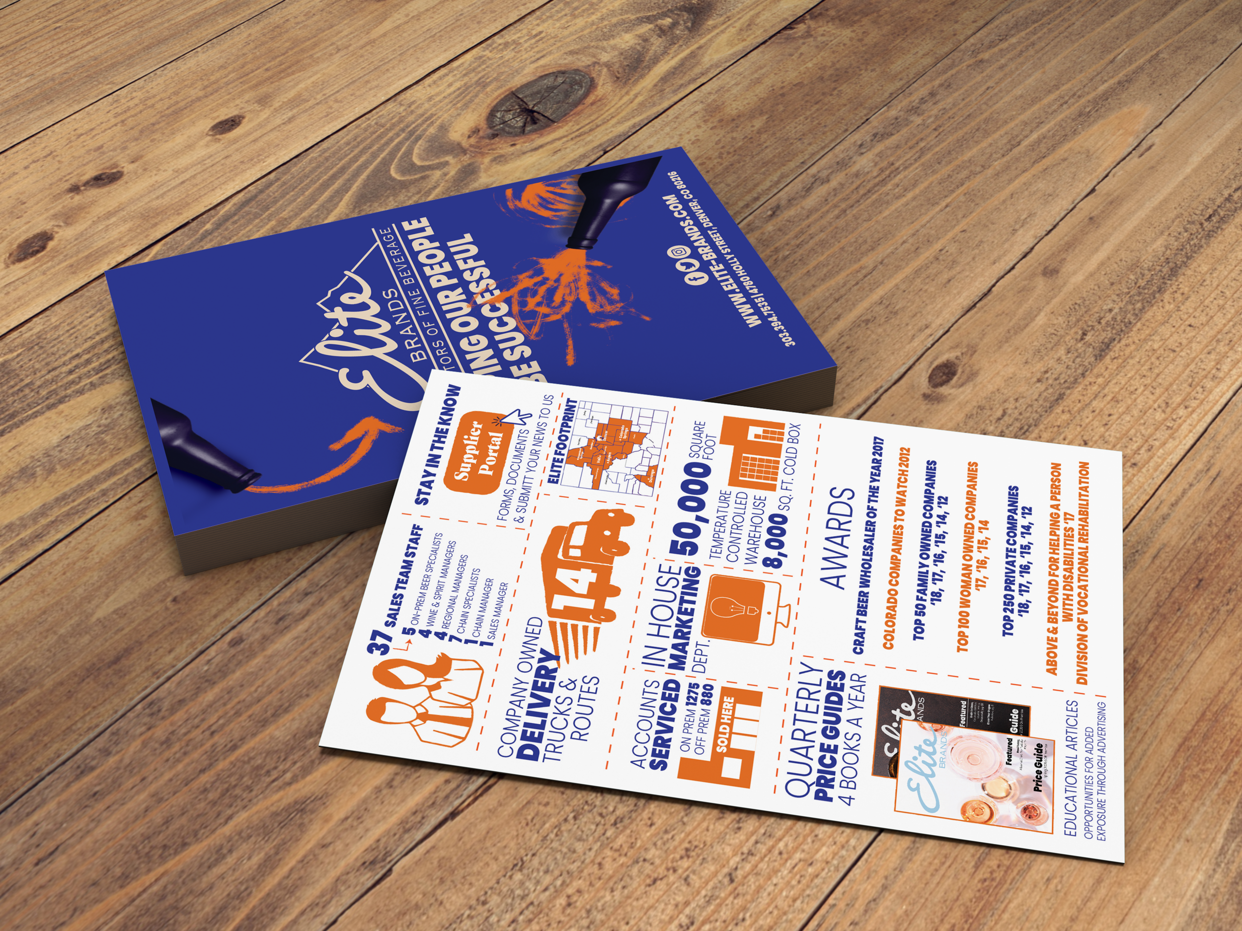 Elite Brands is a beverage distributor, when a brand is looking to find their new distributor we take this very seriously. So having a quick and fun information card to present is always a great first impression, showing our key points with visuals and quick information. I designed this to help our sales team and new brands!